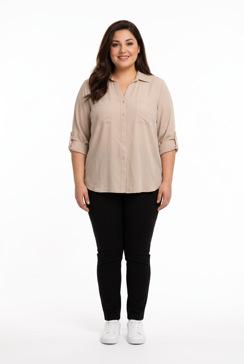 قميص مزدوج الجيب مطوي بمقاس كبير