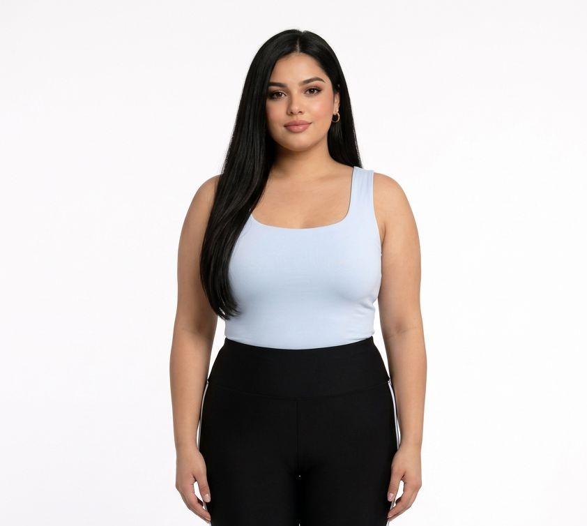 بودي ابيض بدون أكمام ورقبة مربعة مقاس كبير