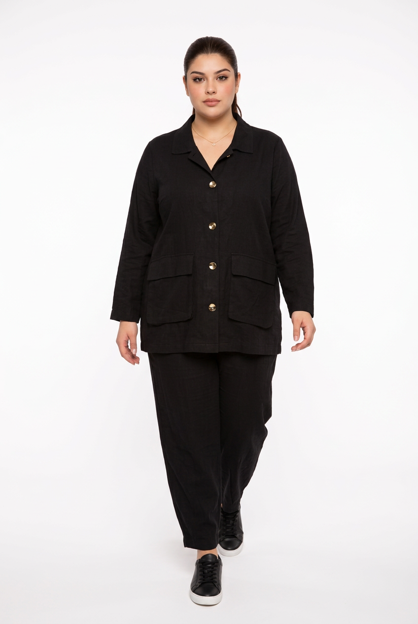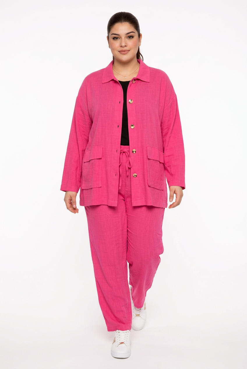 Plus Size Buttoned Lenin Set